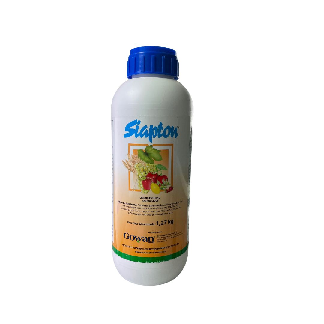 Siapton bioestimulante con aminoácidos es un producto que la planta absorbe rápidamente. Ayuda a los cultivos a estar más fuertes y equilibrados, mejorando su funcionamiento interno y favoreciendo una cosecha de mayor calidad y rendimiento.
