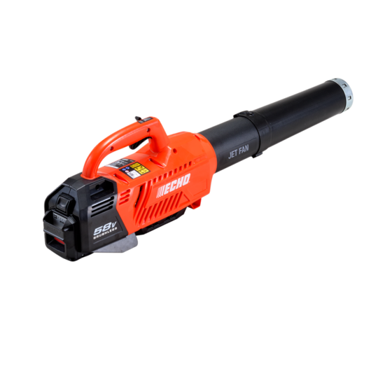 Souffleur à batterie ECHO ECPLB-58V avec chargeur rapide ECBC-58V et batterie 2Ah ECBP-58V2AH inclus. Puissance 58V. Silencieux, sans vibrations ni émissions, économique et facile à utiliser.